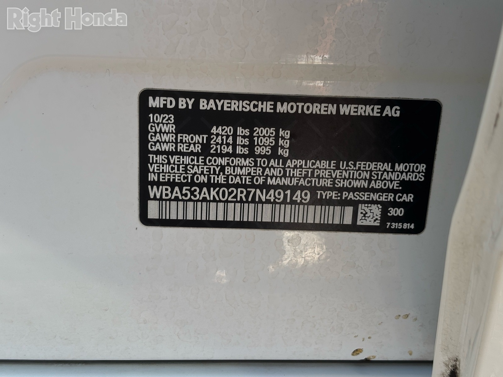 - VIN : WBA53AK02R7N49149
