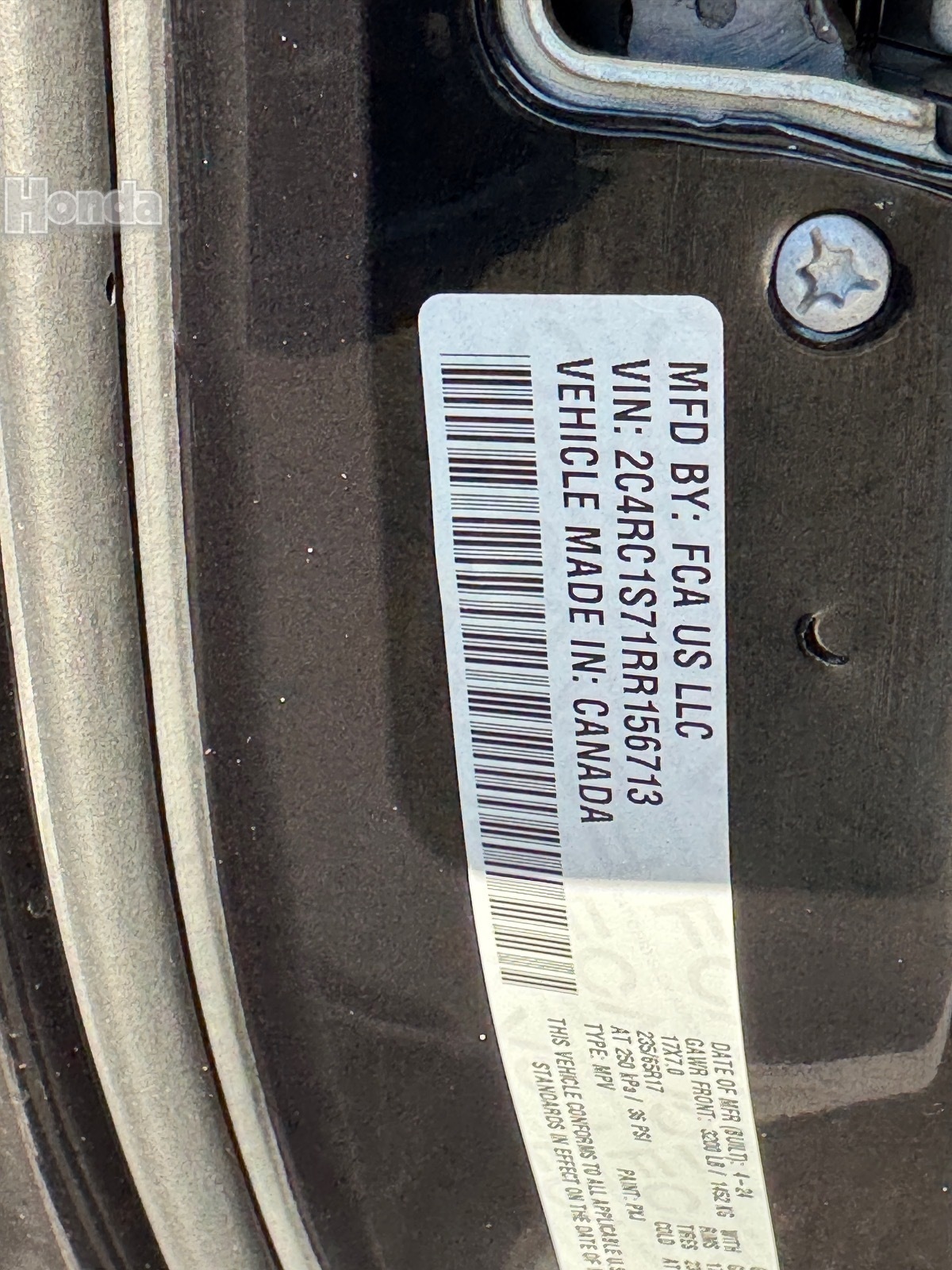 - VIN : 2C4RC1S71RR156713