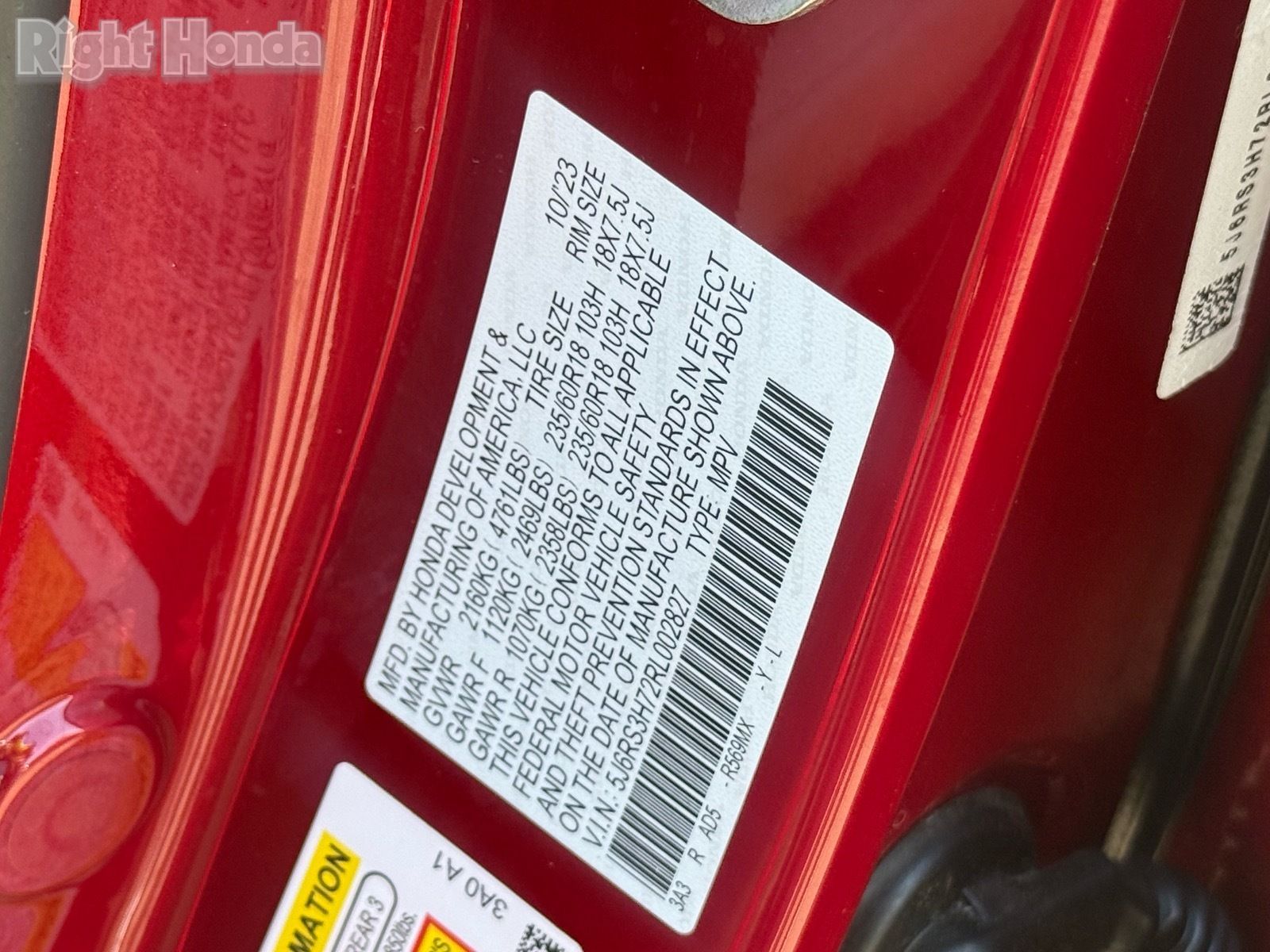 - VIN : 5J6RS3H72RL002827