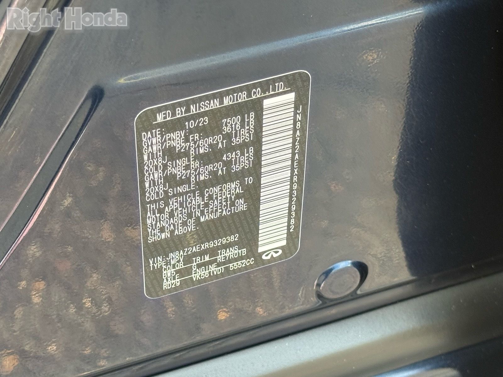 - VIN : JN8AZ2AEXR9329382