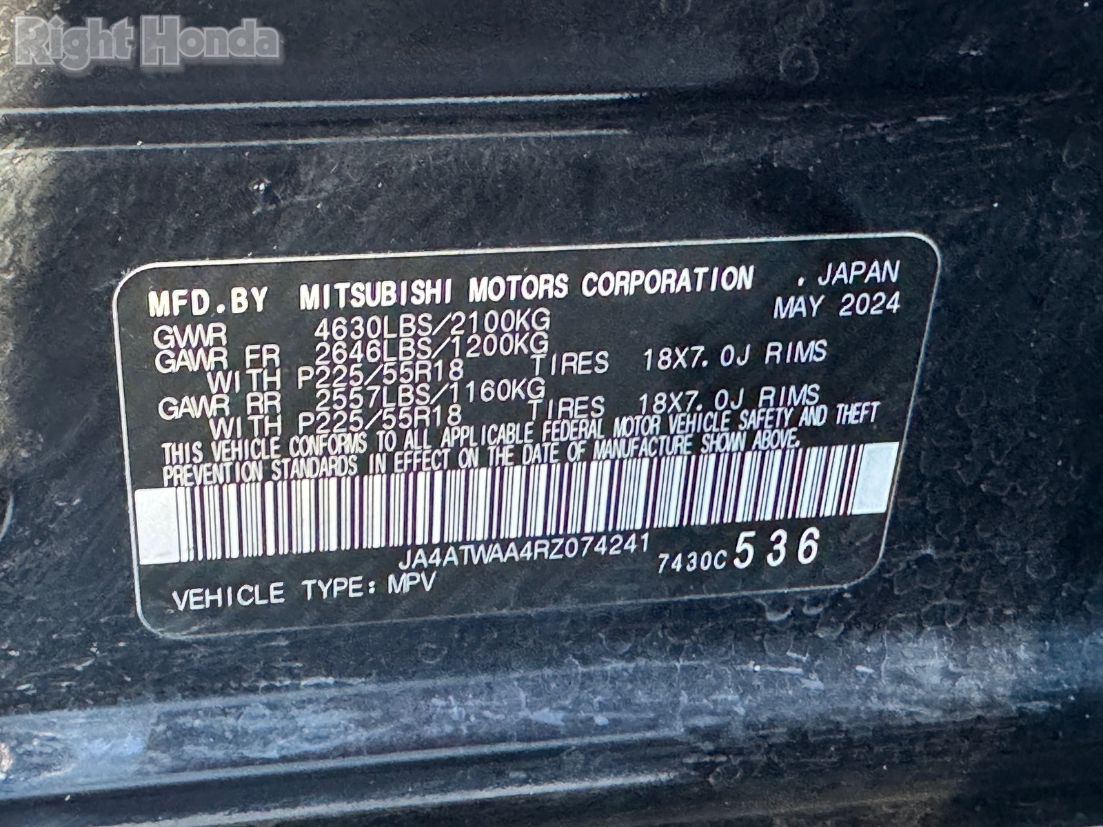 - VIN : JA4ATWAA4RZ074241