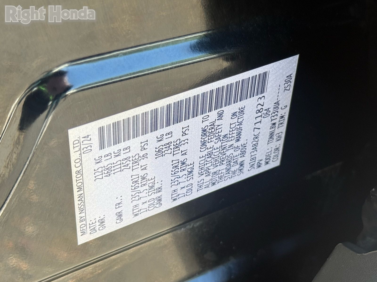 - VIN : 5N1BT3AB2RC711823