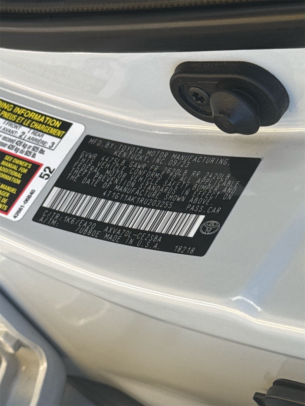 - VIN : 4T1G11AK1RU203255