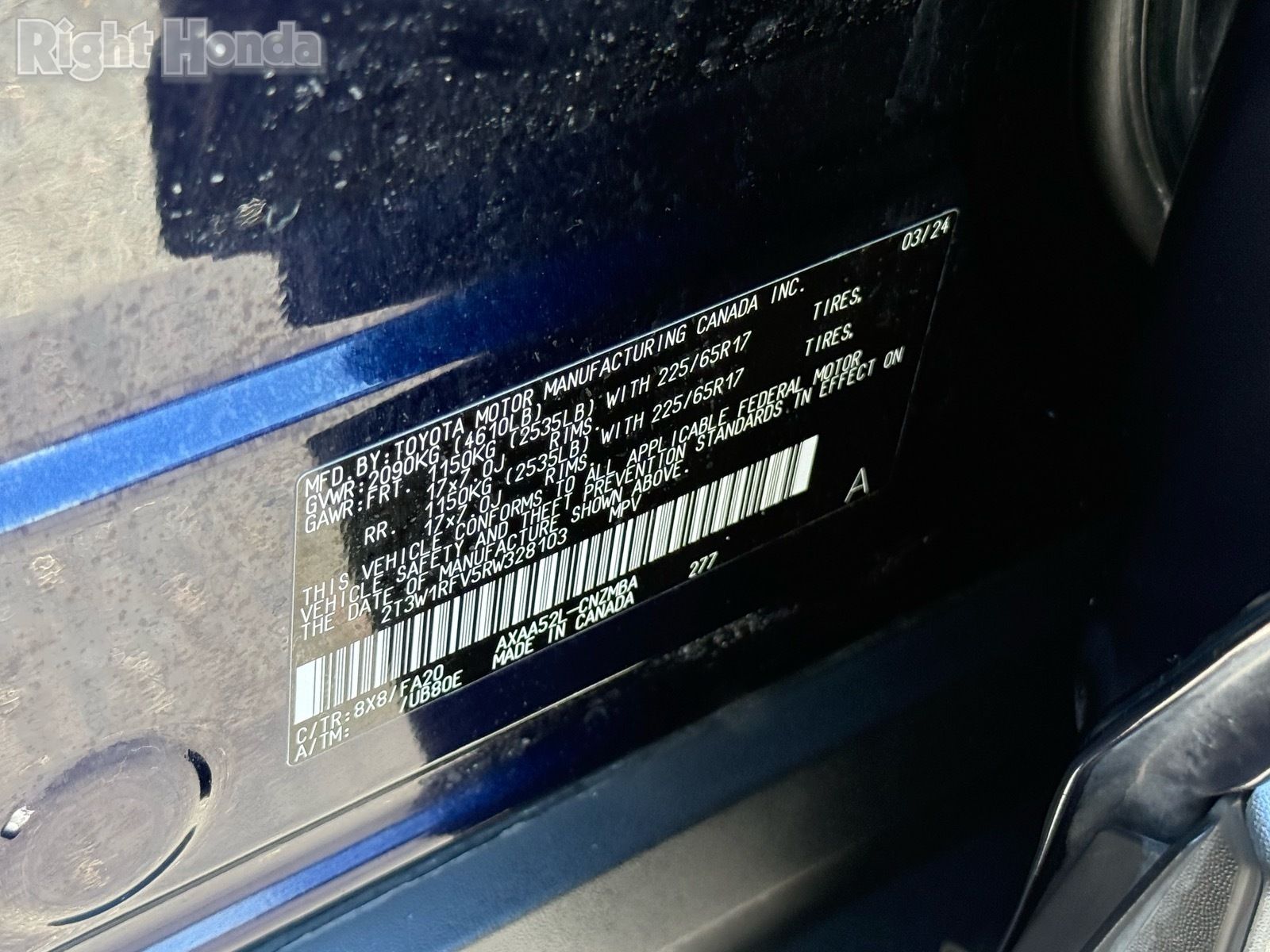 - VIN : 2T3W1RFV5RW328103