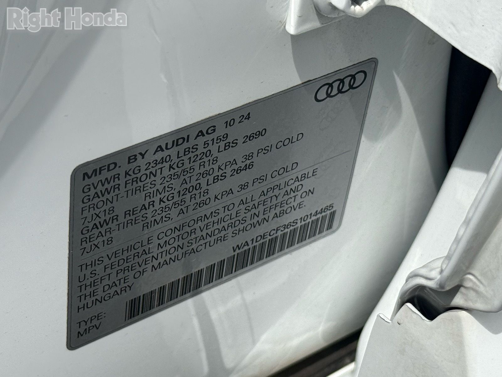 - VIN : WA1DECF36S1014465