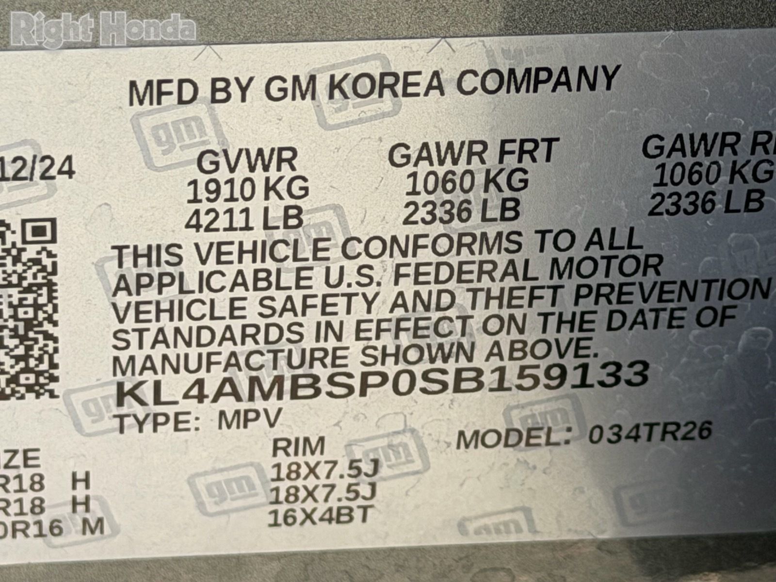 - VIN : KL4AMBSP0SB159133