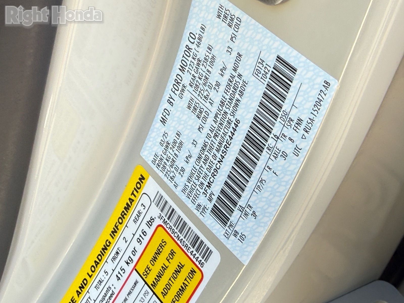 - VIN : 3FMCR9CN4SRE44446