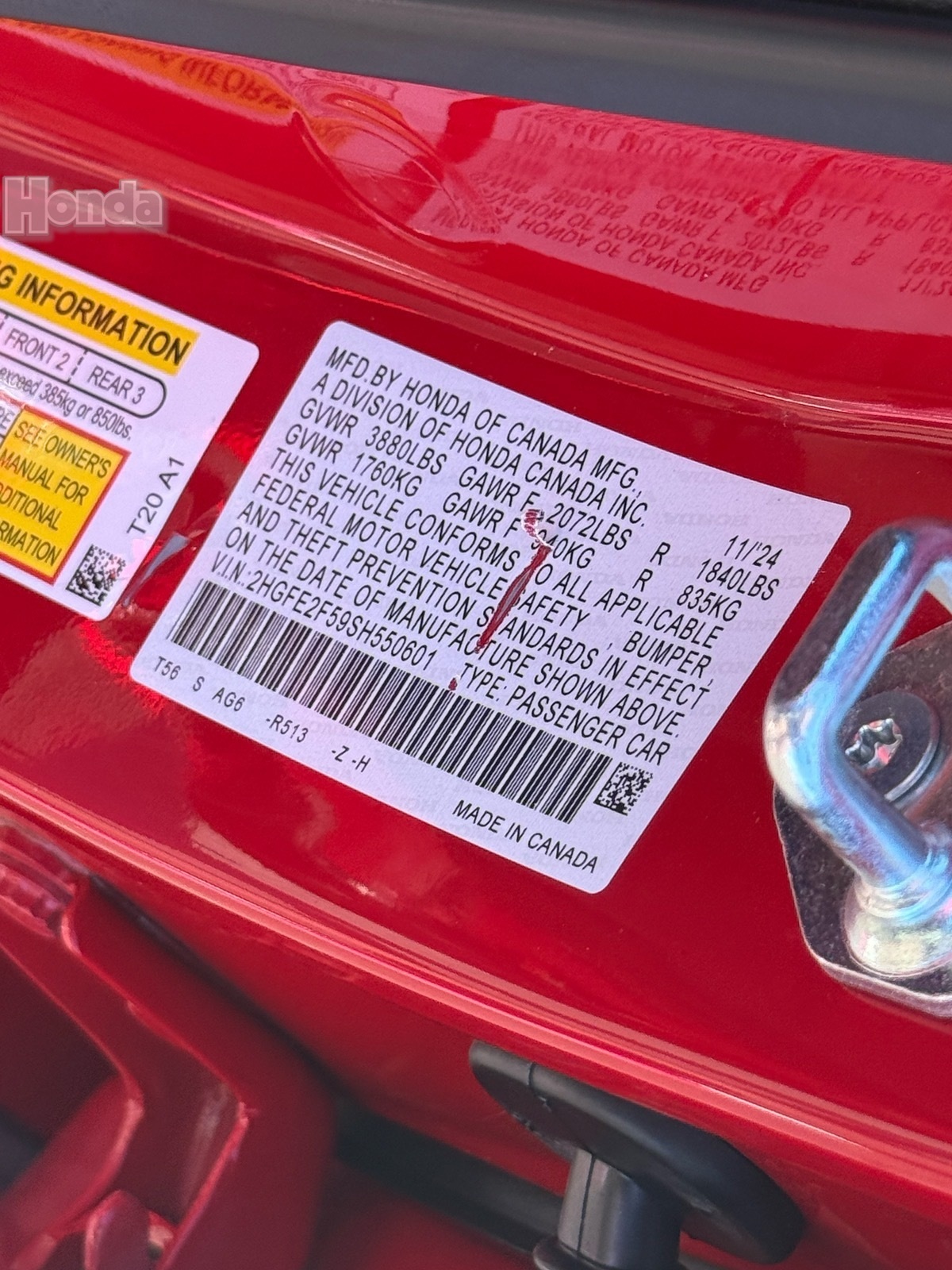 - VIN : 2HGFE2F59SH550601