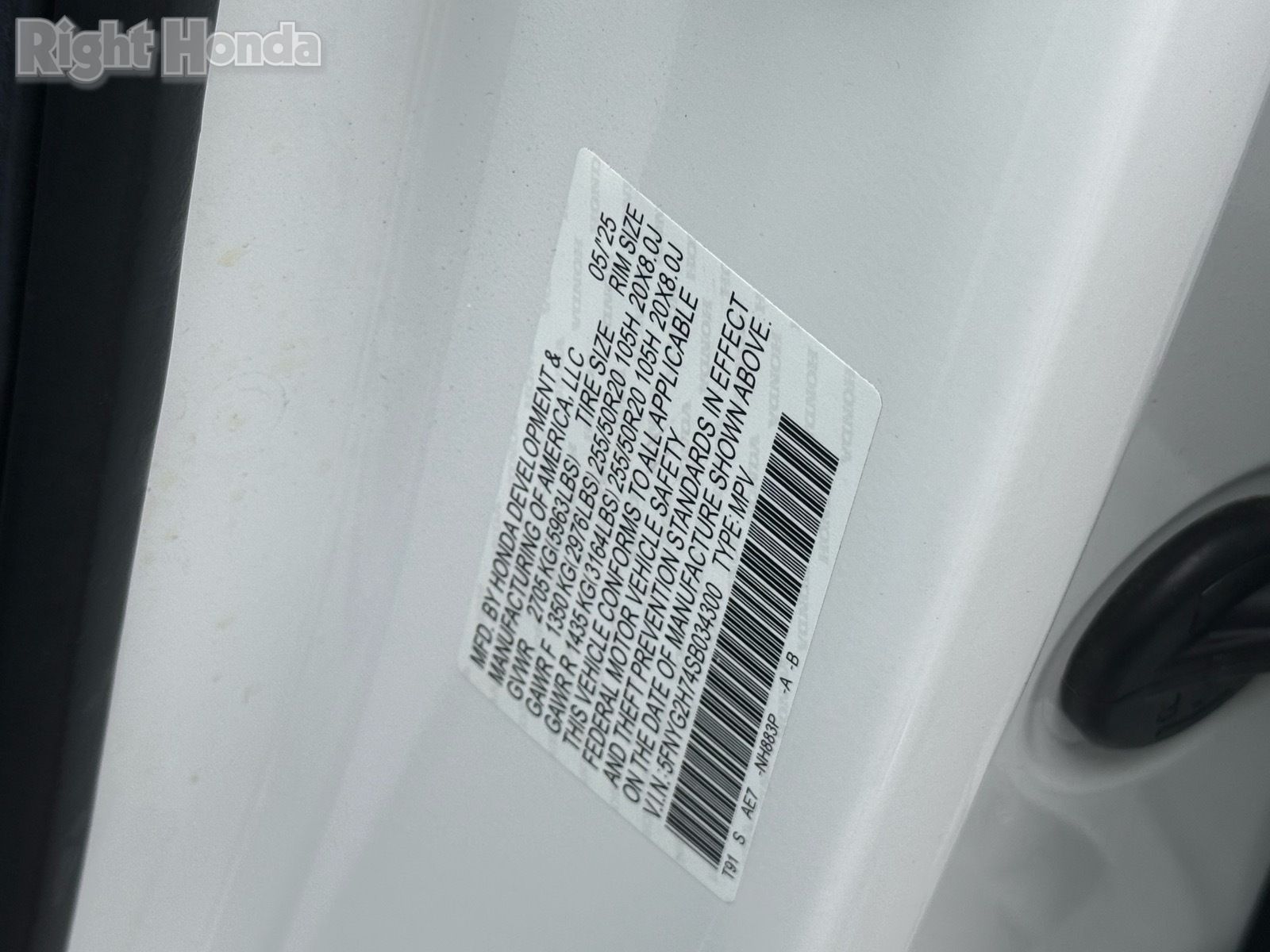 - VIN : 5FNYG2H74SB034300