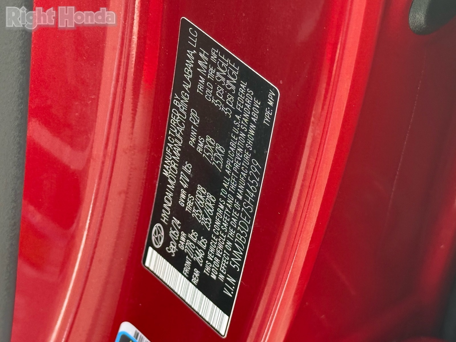 - VIN : 5NMJB3DE7SH465299