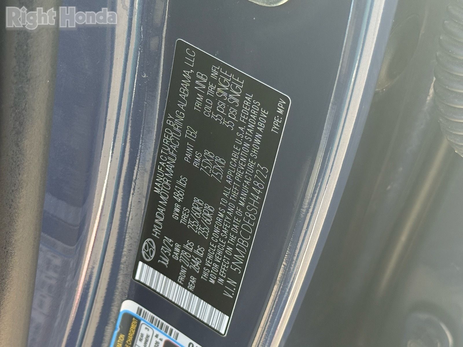 - VIN : 5NMJBCDE8SH448723