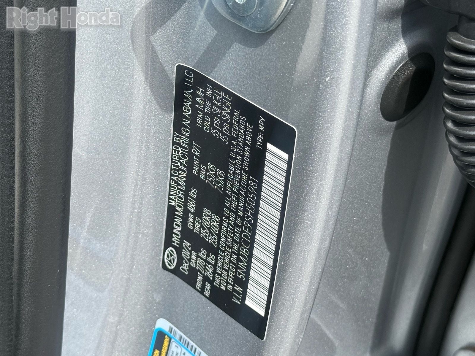 - VIN : 5NMJBCDE9SH505981