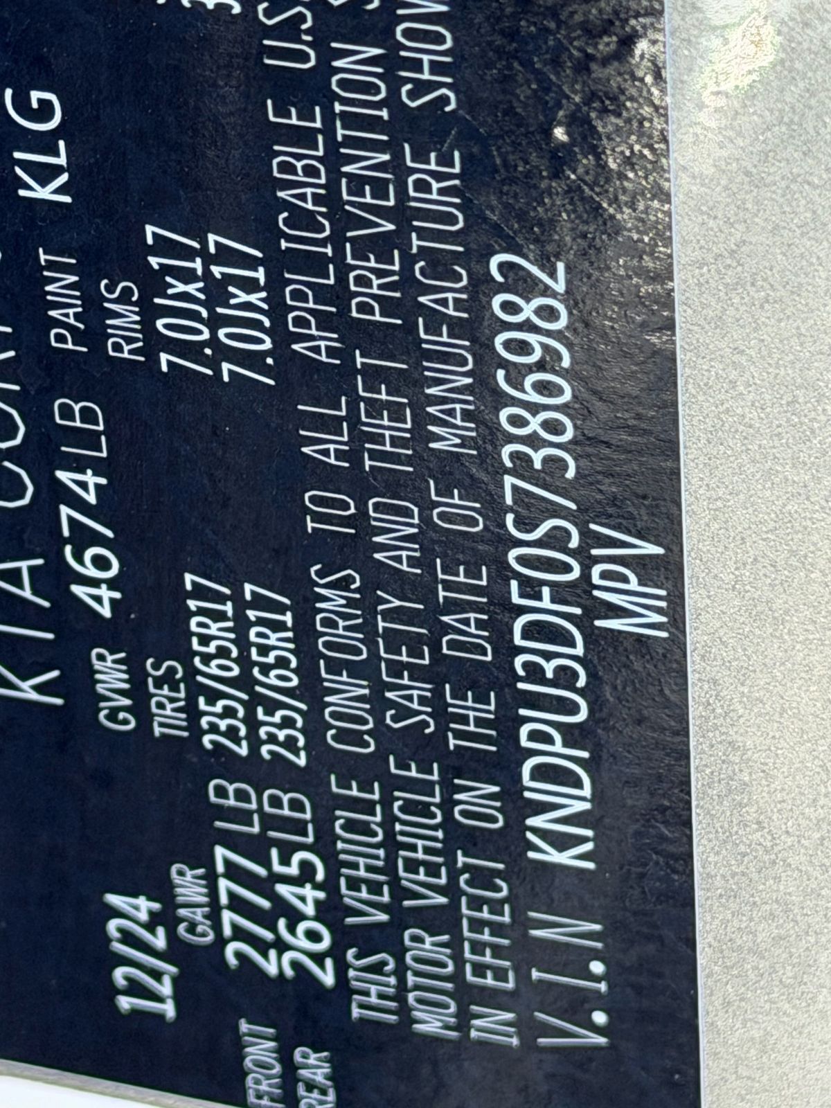 - VIN : KNDPU3DF0S7386982
