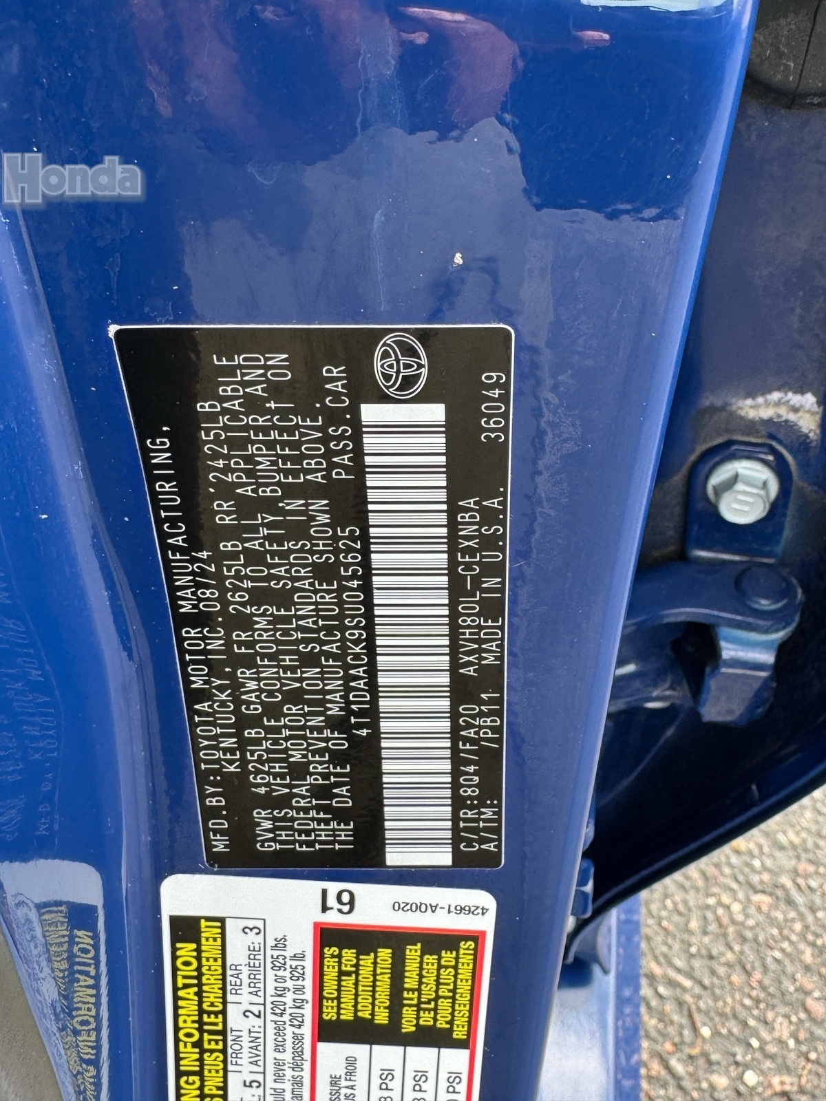 - VIN : 4T1DAACK9SU045625