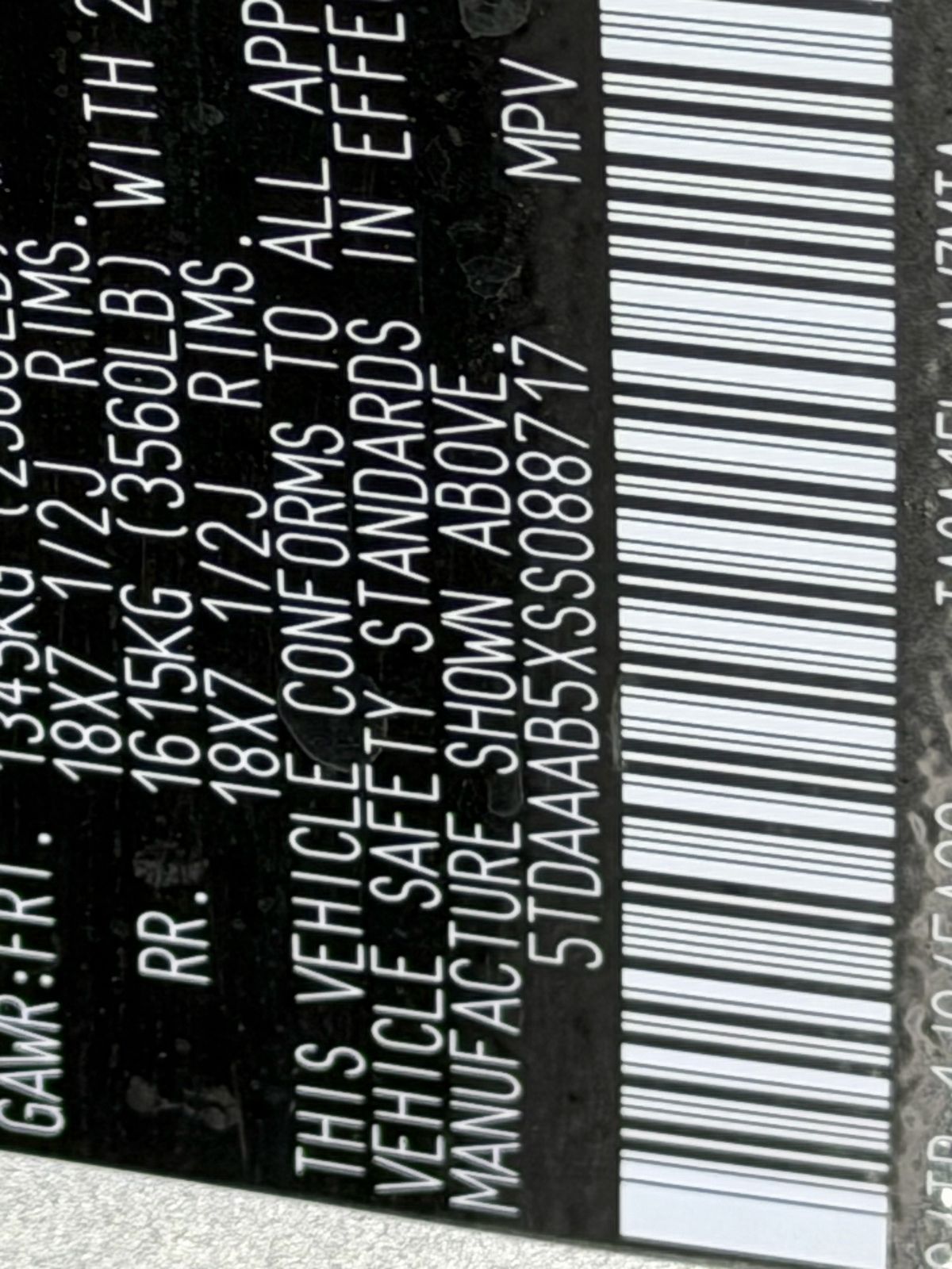 - VIN : 5TDAAAB5XSS088717