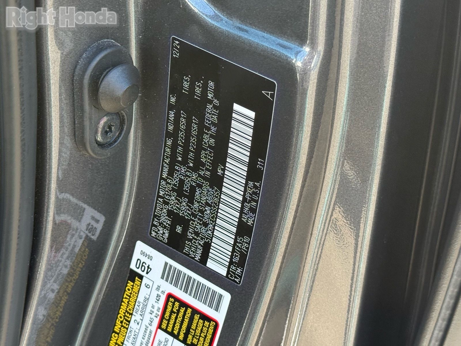 - VIN : 5TDKRKEC5SS238357