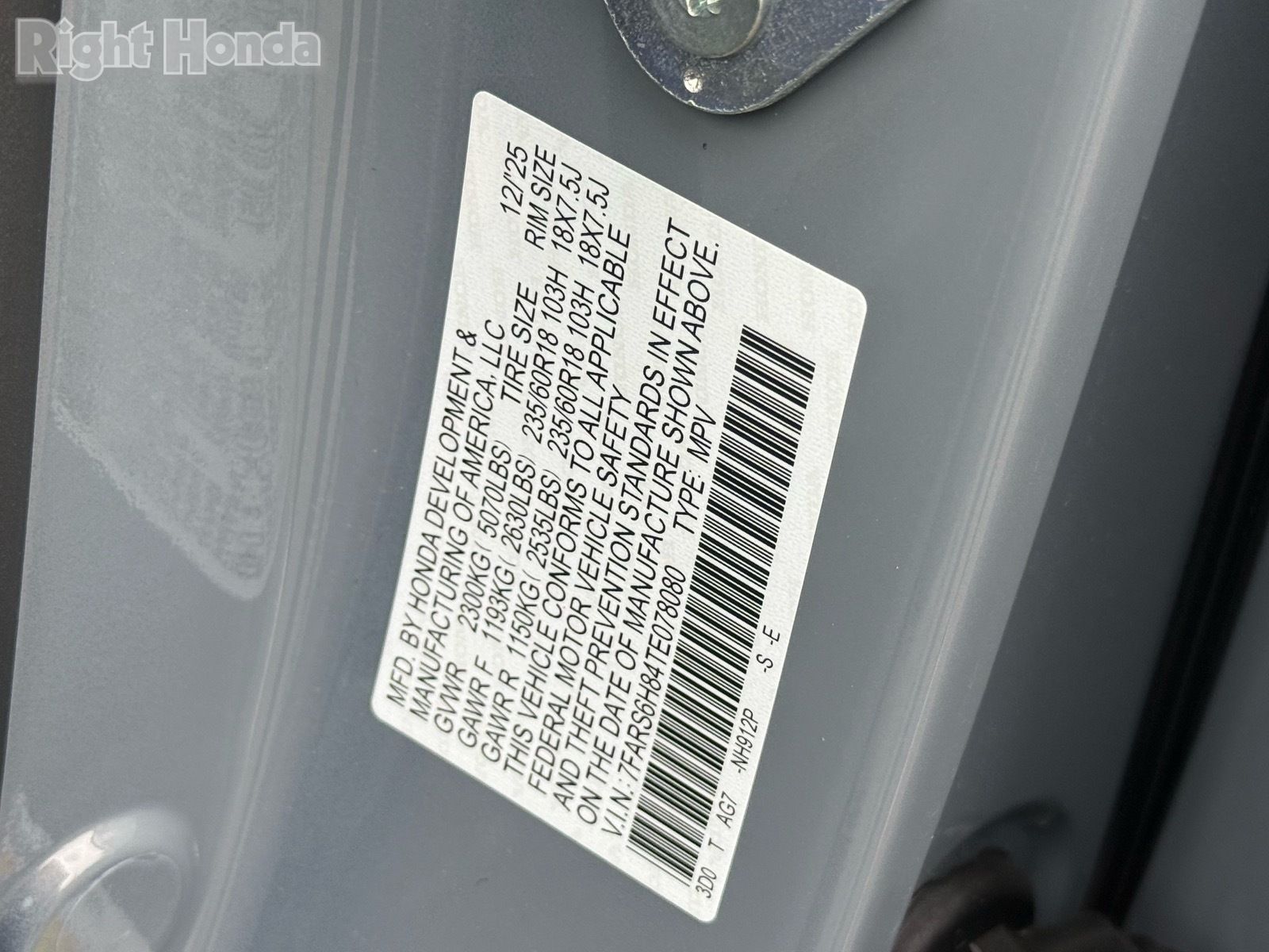 - VIN : 7FARS6H84TE078080