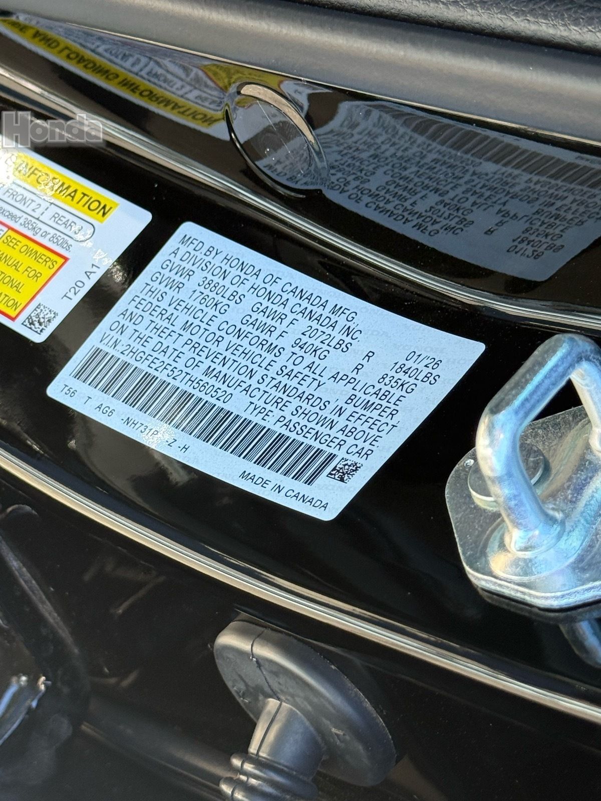 - VIN : 2HGFE2F52TH560520