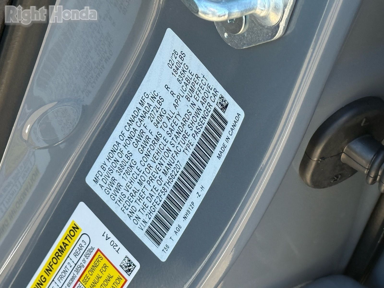 - VIN : 2HGFE2F58TH562207