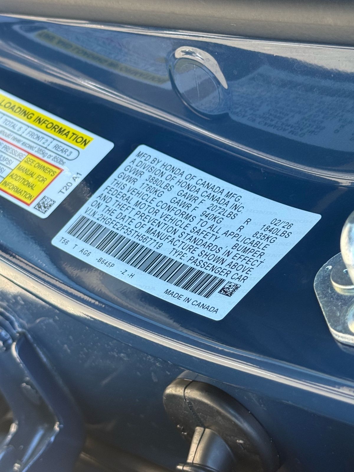 - VIN : 2HGFE2F55TH567719