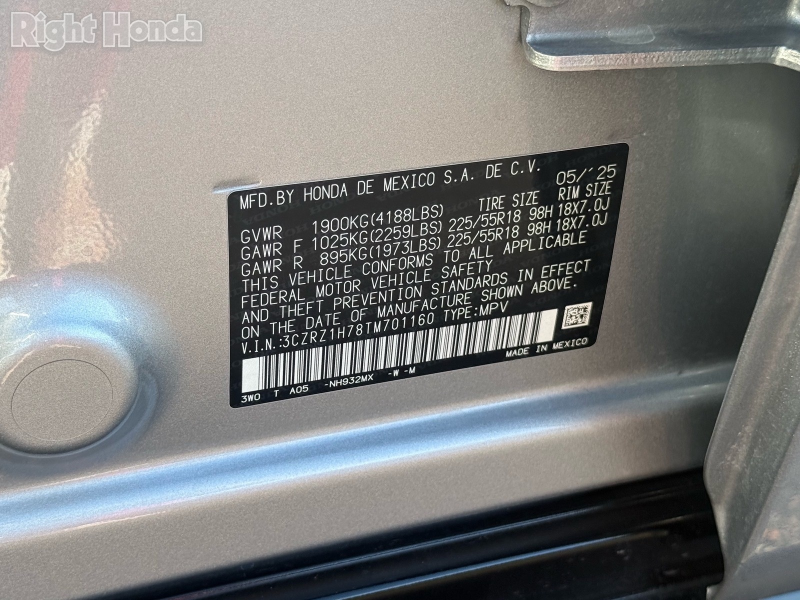 - VIN : 3CZRZ1H78TM701160