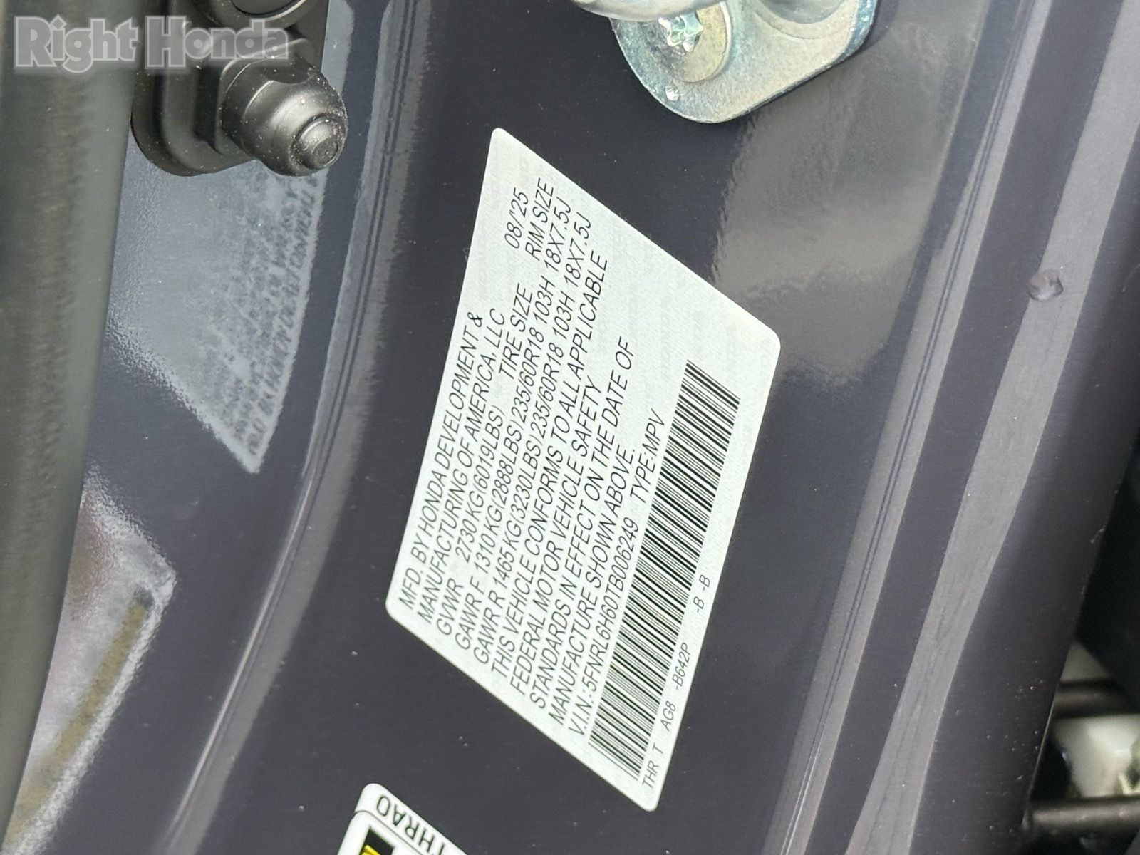 - VIN : 5FNRL6H60TB006249